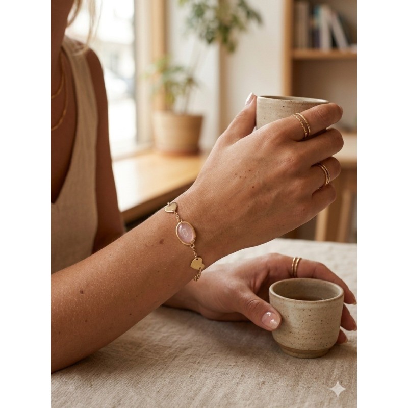 bracciale in argento dorato con cuori e pietra rosa mod. itaargbr1348