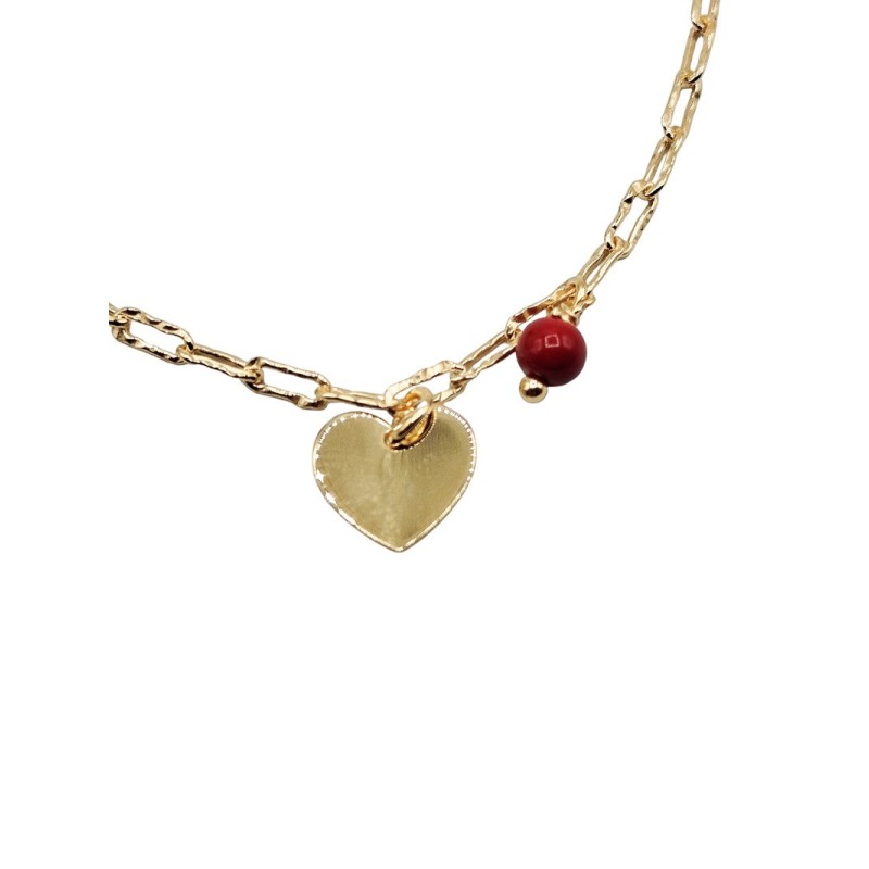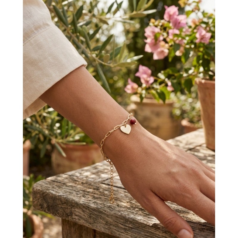 Bracciale in argento dorato 925 con cuore e pallina rossa. Linea SPUNTI DI LUCE. L'articolo verrà spedito in confezione originale IL GIOIELLO DI PANI.