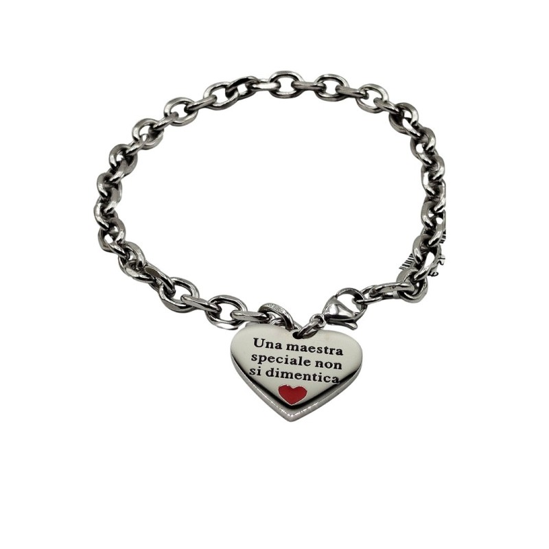 Bracciale in acciaio 316 l con frase UNA MAESTRA SPECIALE NON SI DIMENTICA . L'articolo verrà spedito in confezione originale IL GIOIELLO DI PANI.