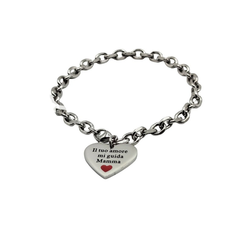 Bracciale in acciaio 316 l con frase IL TUO AMORE MI GUIDA MAMMA . L'articolo verrà spedito in confezione originale IL GIOIELLO DI PANI.
