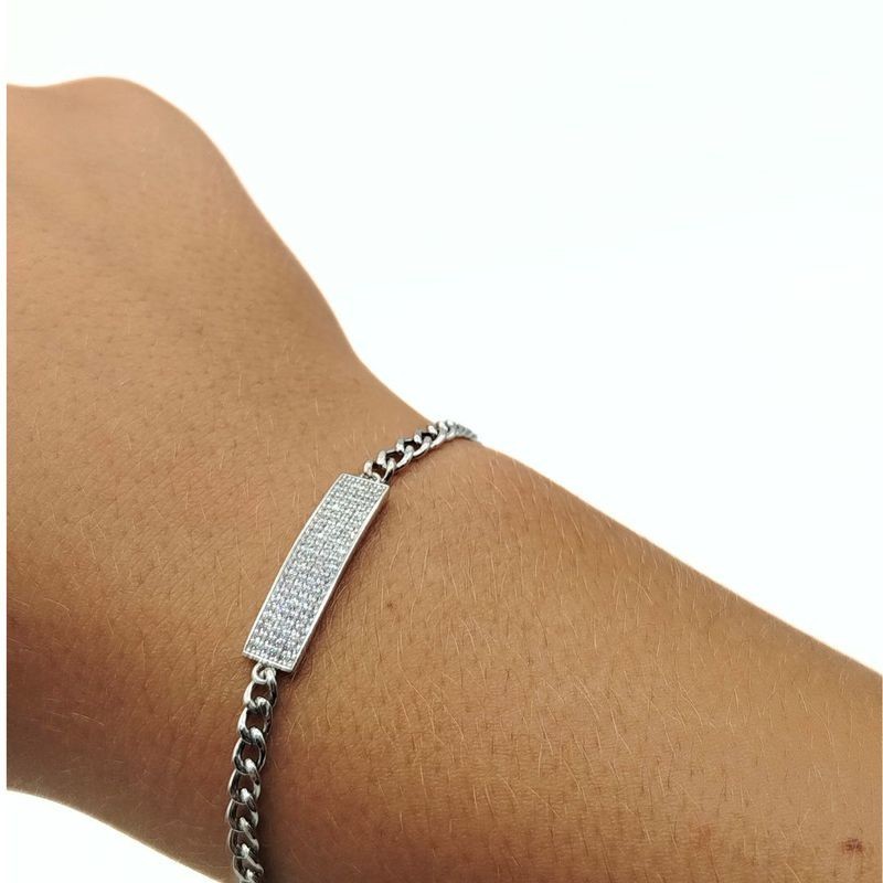 Bracciale catena con piastra zirconata e chiusura moschettone. L'articolo verrà spedito nel suo particolare astuccio X LUI e certificato di qualità che ne attesta il materiale.
