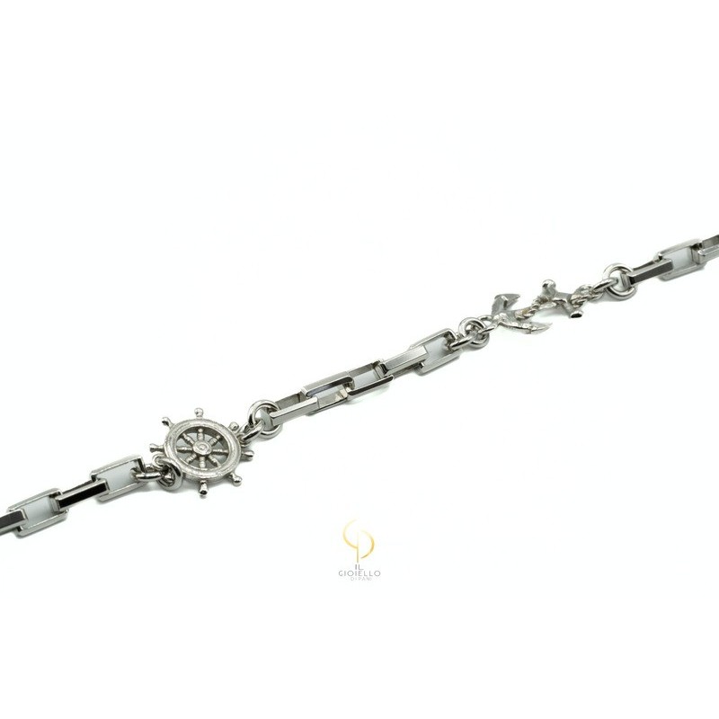 Bracciale in Argento 925/°°° con ancora e timone - Questo articolo fa parte della linea Per Lui e verrà spedito col suo particolare astuccio.