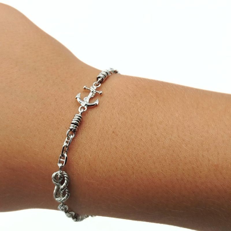Bracciale in Argento 925/°°° con ancora e nodo - Questo articolo fa parte della linea Per Lui e verrà spedito col suo particolare astuccio.