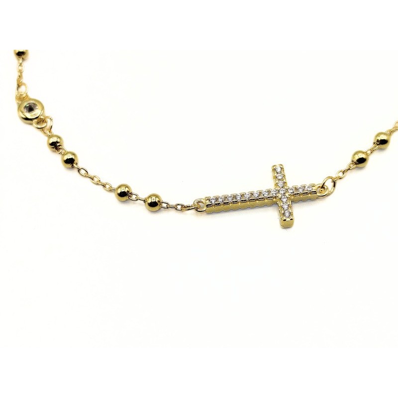 BR.ROSARIO CON CROCE IN ARG. E ZIRCONI MOD. B0197 [609311ee]
