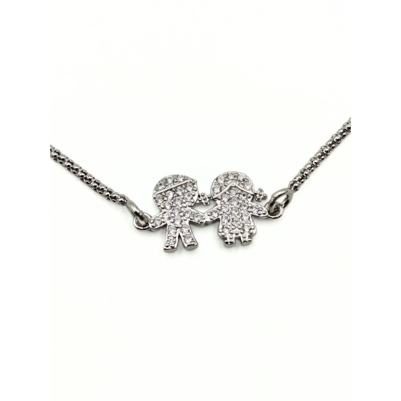 Bracciale con bimbo e bimba maglia popcorn in argento con zirconi. Linea KAMALII X LEI. L'articolo verrà spedito in confezione originale IL GIOIELLO DI PANI.
