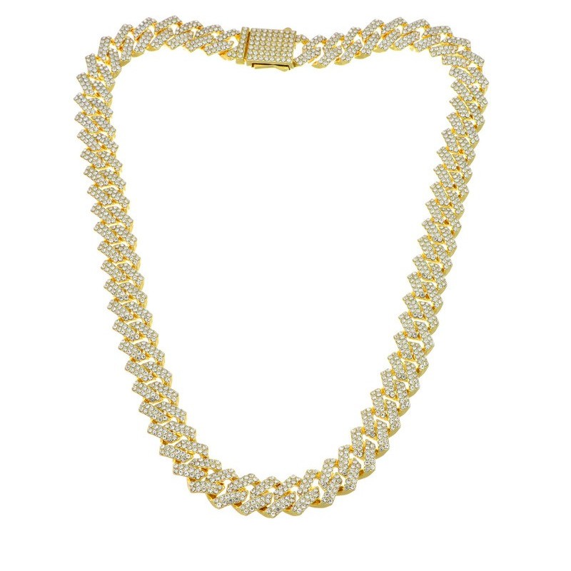 Catena modello cubana in acciaio dorato 316 l con zirconi bianchi naturali. Lunghezza 50 cm. L'articolo verrà spedito in confezione originale IL GIOIELLO DI PANI.