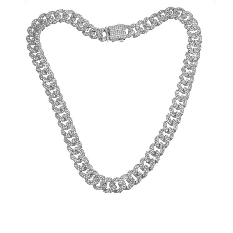 Catena modello cubana in acciaio 316 l con zirconi bianchi naturali. L'articolo verrà spedito in confezione originale IL GIOIELLO DI PANI.