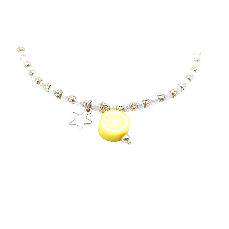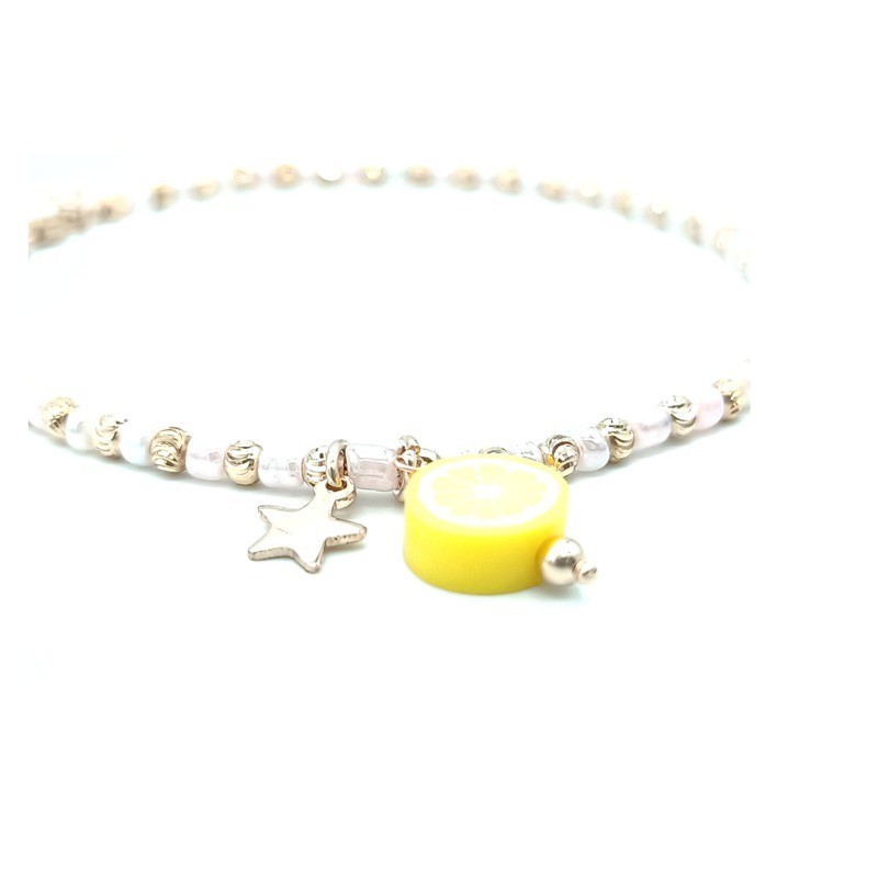 Cavigliera in argento rosato 925/°°° con elemento frutta, stella e sfere colorate