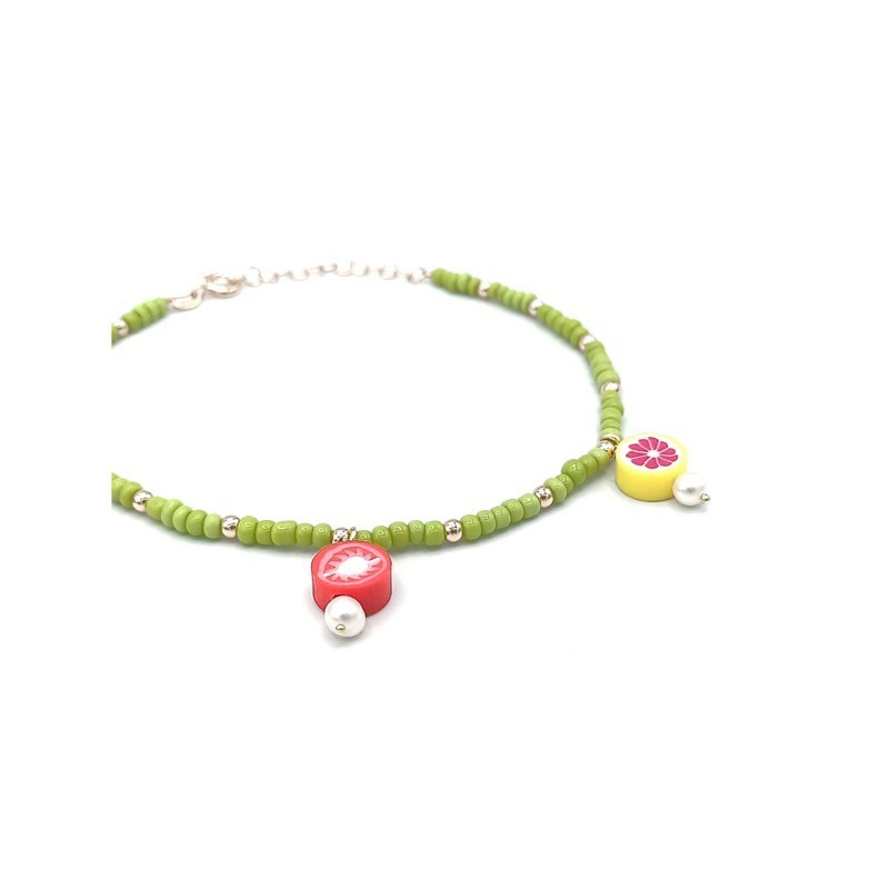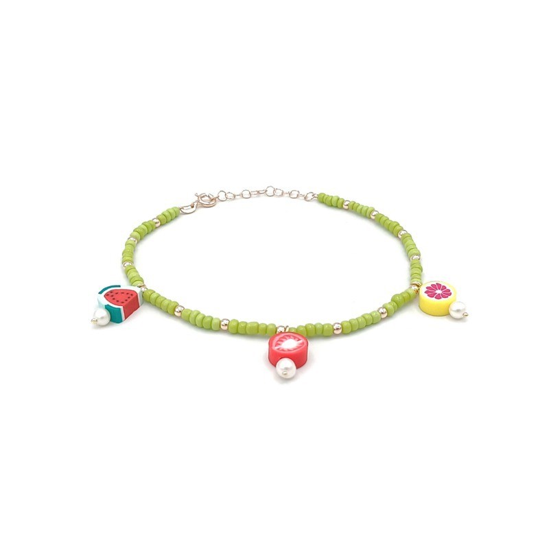 Cavigliera in argento 925/°°° con elementi frutta e sfere colorate