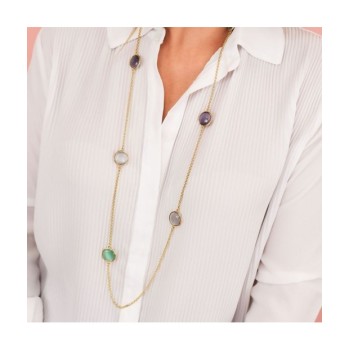 Collana placcata oro giallo con pendente di cristallo color ametista da 14 mm racchiuso in un doppio pavè di zirconi naturali. L'articolo verrà spedito in confezione originale IL GIOIELLO DI PANI.