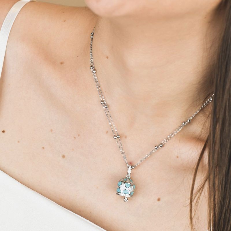 COLLANA CON CAMPANELLA SONORA RODIATO E AZZURRO MOD. CL/GR01 [fa7de375]