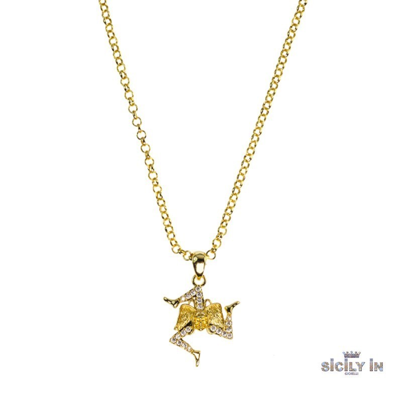 Collana ideata e realizzata da Sicily In La collana è impreziosita da uno charm 'la trinacrià che rappresenta le tre estremità della Sicilia. La lunghezza è regolabile avendo la chiusura a moschettone.La collana Sicily In è composta esclusivamente da metallo anallergico. Questo articolo verrà spedito con scatola originale Mizzica.