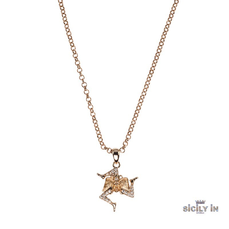 Collana ideata e realizzata da Sicily In La collana è impreziosita da uno charm 'la trinacrià che rappresenta le tre estremità della Sicilia. La lunghezza è regolabile avendo la chiusura a moschettone.La collana Sicily In è composta esclusivamente da metallo anallergico. Questo articolo verrà spedito con scatola originale Mizzica.