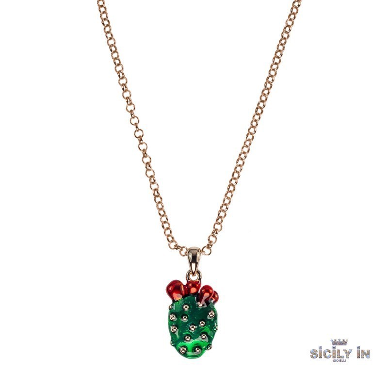 La collana è ideata e realizzata da 'Sicily In'. Il bracciale è impreziosito da uno charm (il fico d'india), la lunghezza è regolabile con chiusura a moschettone, composto esclusivamente da : metallo anallergico. Inoltre il fico d'india rappresenta l'adattamento e il cambiamento della vita.Pertetto come idea regalo nelle occasioni come: compleanni, anniversari di matrimonio, onomastico etc...Questo articolo verrà spedito con scatola originale Mizzica.