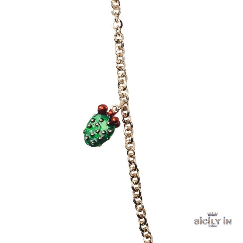 Collana ideata e realizzata da Sicily In.La collana è impreziosita da sei charm (la coffa, la ruota, la trinacria, il fico d'india, il moro e la stella marina), la lunghezza è regolabile,con chiusura a moschettone.La collana è realizzata da metallo anallergico e zirconi. Questo articolo può essere un ottimo regalo per compleanni, anniversario di matrimonio, fidanzamento etc.. La colana verrà spedita con scatola originale Mizzica.