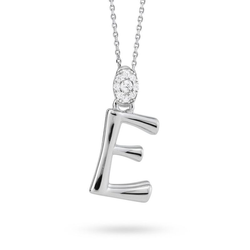 Collana in argento, stile girocollo, con pendente a forma di lettera E e perno in zirconia.L'articolo verrà spedito in confezione originale.