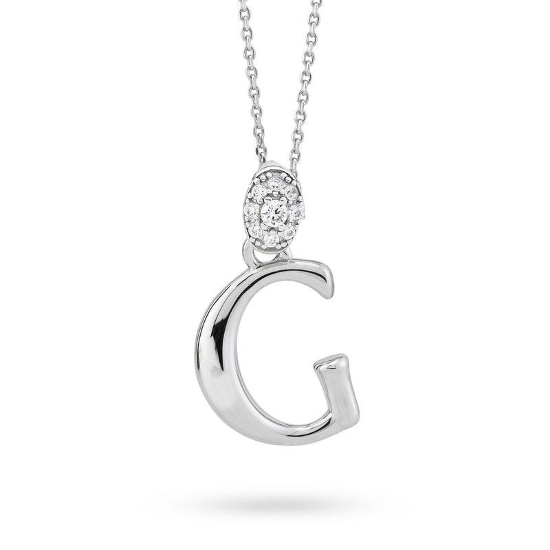 Collana in argento, stile girocollo, con pendente a forma di lettera G e perno in zirconia.L'articolo verrà spedito in confezione originale.