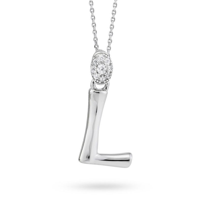 Collana in argento, stile girocollo, con pendente a forma di lettera L e perno in zirconia. L'articolo verrà spedito in confezione originale.