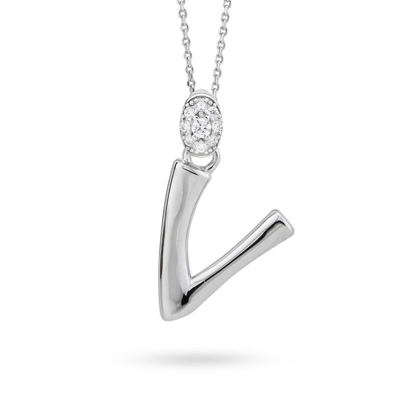 Collana in argento, stile girocollo, con pendente a forma di lettera V e perno in zirconia.L'articolo verrà spedito in confezione originale.