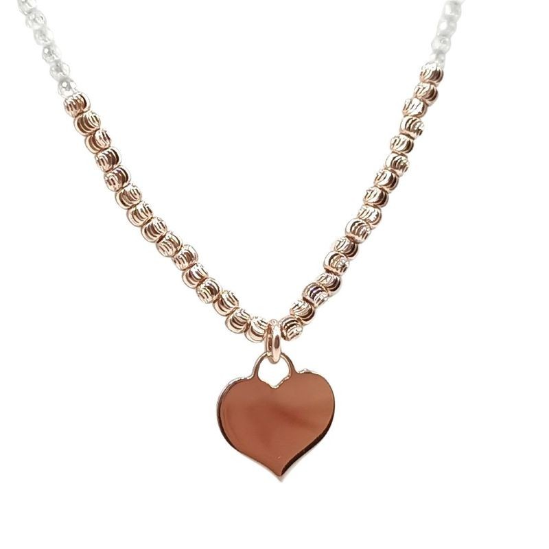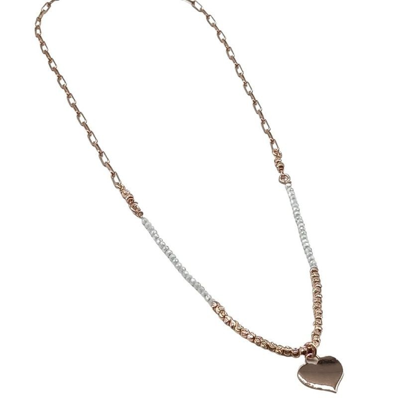 Collana in Argento 925/°° Rosata con cuore e Swarovsky bianchi