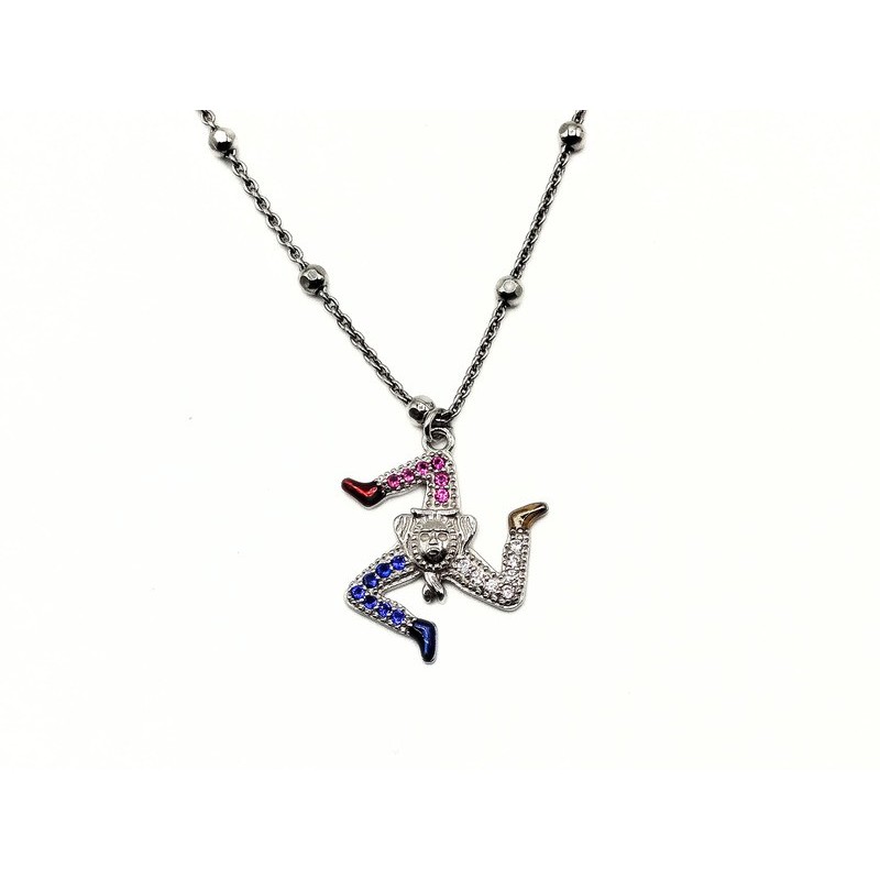 Collana Trinacria in argento e zirconi colorati. Linea SICILIA X LEI. L'articolo verrà spedito in confezione originale IL GIOIELLO DI PANI.