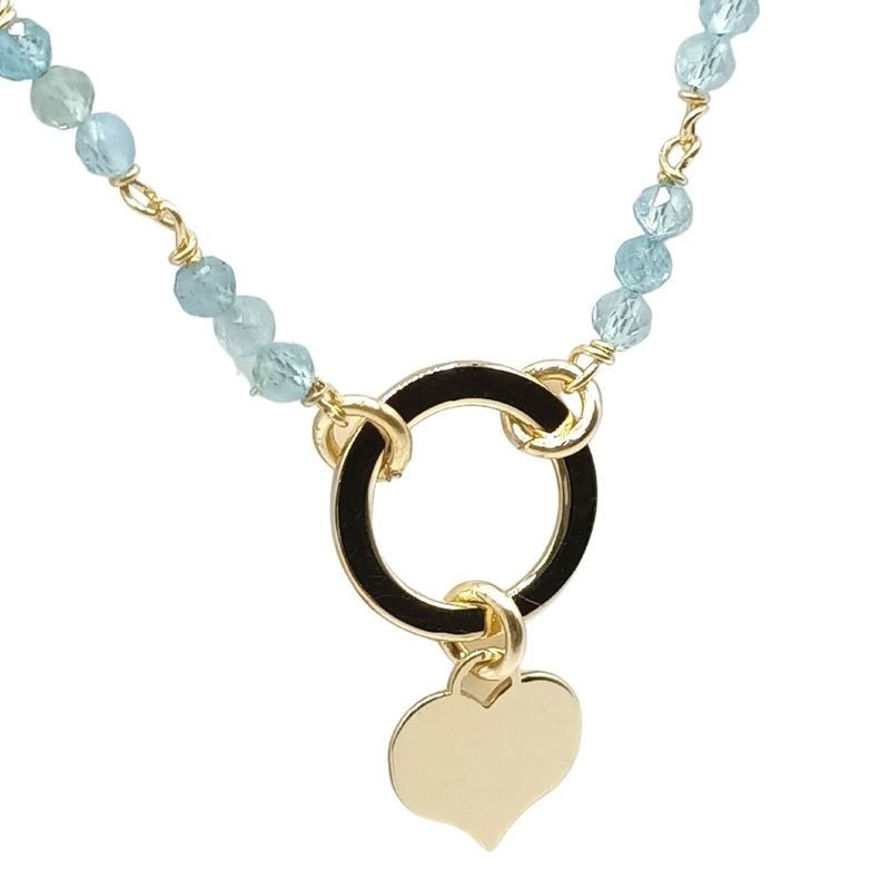 Collana in Argento 925/°° dorata con cuore e quarzo azzurro