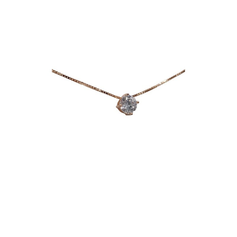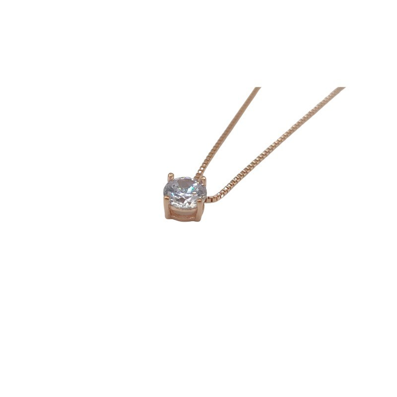 Collana Punto Luce modello 4 Griffe in Argento 925/°°° Rosato con zircone bianco naturale da 5MM . Lunghezza collana 45cm