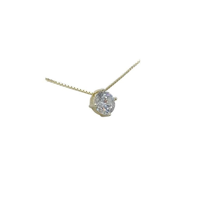 Collana con Punto Luce modello 4 griffe in argento dorata 925/°° con zircone 6 mm - Lunghezza veneziana 45 cm