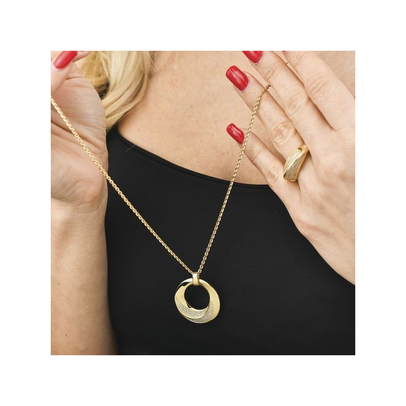 Collana placcata in oro giallo, con pendente pavè di zirconi bianchi. La collana è realizzatoa in Italia, il materiale è bronzo, la misura della sua lunghezza è di 80cm, dimensione pendente 3cm, con chiusura a moschettone. I gioielli Boccadamo grazie al suo design raffinato ed elegante sono creazioni dall'indiscutibile fascino italiano. Collezione CALEIDA.Questo articolo verrà spedito con scatola originale Boccadamo.