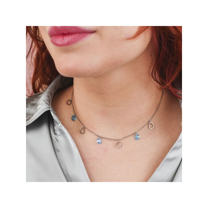 Collana in acciaio con pendenti traforati a forma di cuori alternati a cristalli di colore azzurro.La collana è realizzata in Italia, il materiale è acciaio e cristalli, la misura della sua lunghezza è da 38,5cm a 43,5cm, con chiusura a moschettone. I gioielli Boccadamo grazie al suo design raffinato ed elegante sono creazioni dall'indiscutibile fascino italiano. Collezione MIKIAMI.Questo articolo verrà spedito con scatola originale Boccadamo