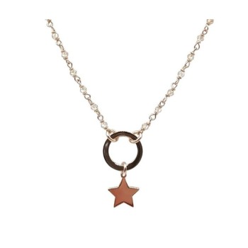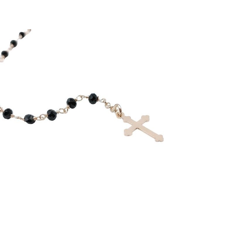 collana rosario con pendente in argento 925% rosato e pietre nere. lunghezza collana 50cm