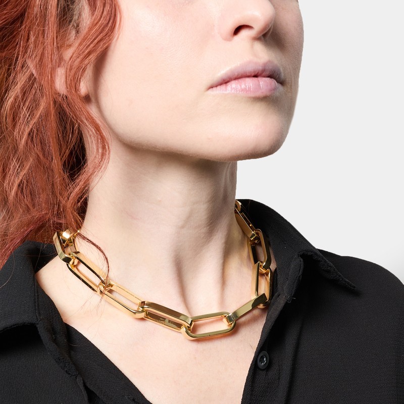 Collana girocollo in catena forzatina quadra con bagno in oro. Chiusura a moschettone ed anelli di allungamento, misura 50,00 cm. Il design essenziale della catena forzatina si unisce a volumi importanti e linee grintose per un mix dal fascino irresistibile. Un gioiello che è molto più di un semplice accessorio per valorizzare un look, una collana da indossaare da sola o insieme ad altre catene, ogni volta come una nuova chiave d'espressione di te e del tuo stile. L'articolo verrà spedito in confezione originale UNOAERRE.