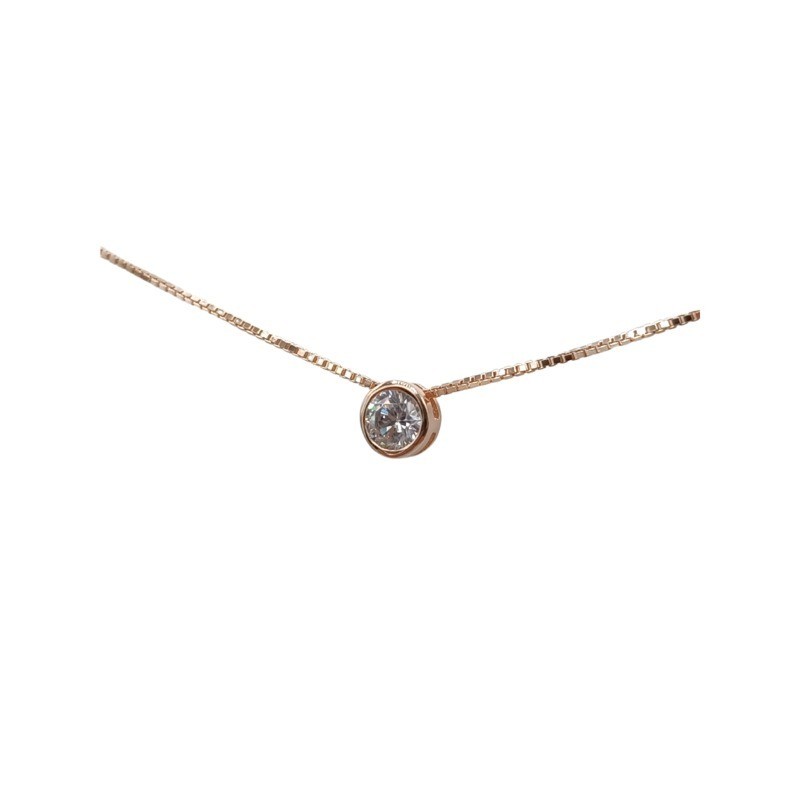 Collana Punto Luce modello Cipollino in Argento 925% Rosato con zircone naturale da 4mm e veneziana da 45cm.