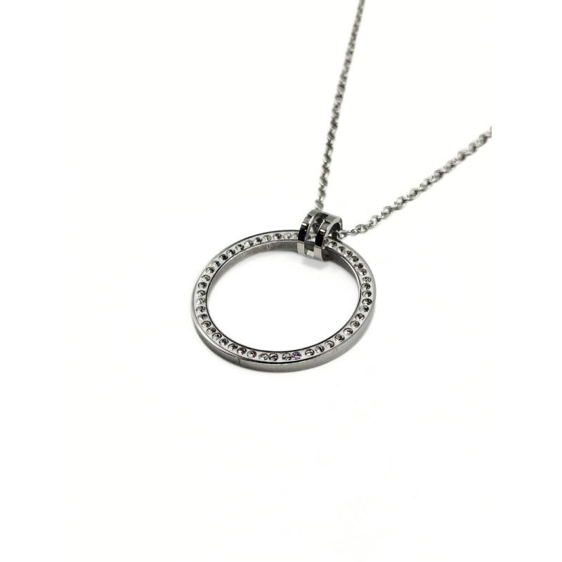 Collana in acciaio con elemento cerchio e zirconi naturali. L'articolo verrà spedito in confezione originale IL GIOIELLO DI PANI.