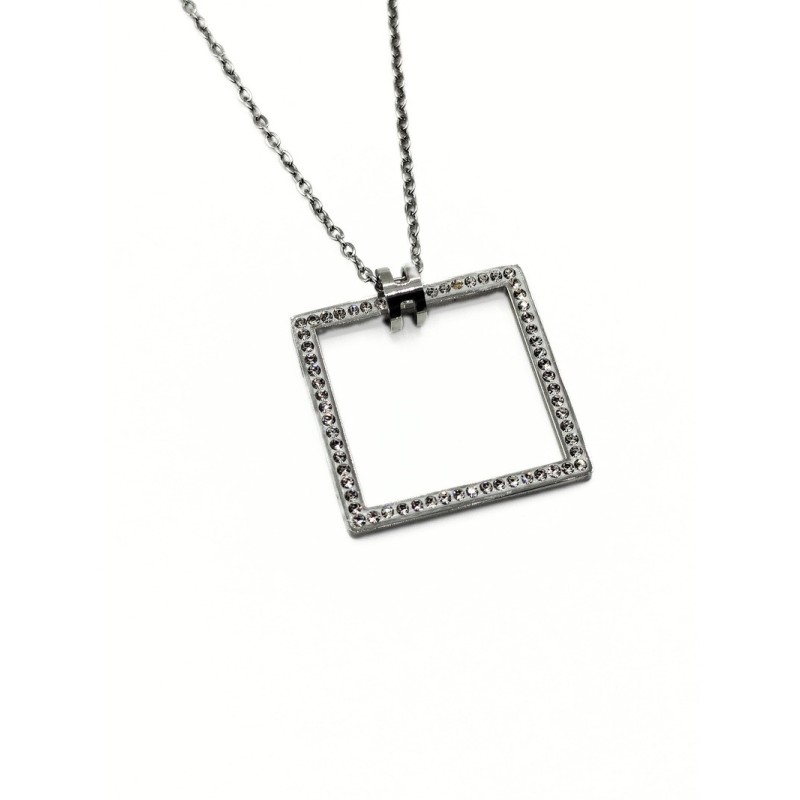Collana in acciaio con elemento quadrato e zirconi naturali. L'articolo verrà spedito in confezione originale IL GIOIELLO DI PANI.