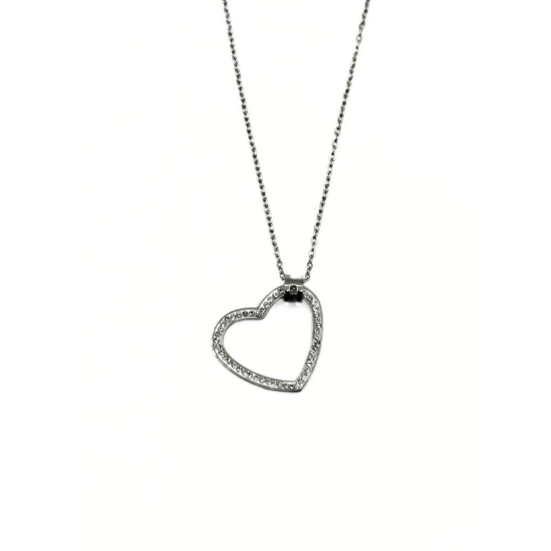 Collana in acciaio con elemento cuore e zirconi naturali. L'articolo verrà spedito in confezione originale IL GIOIELLO DI PANI.