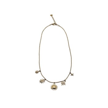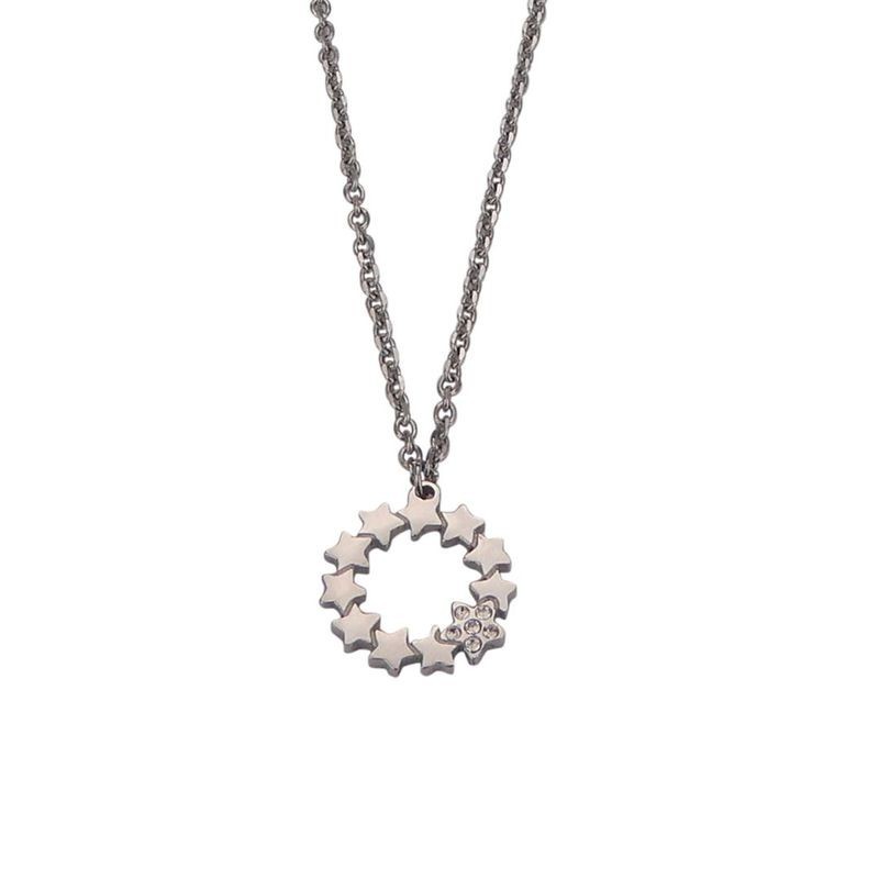 Collana rodiata con pendente circolare composto da stelle e stella di strass in rilievo. L'articolo verrà spedito in confezione originale BOCCADAMO.