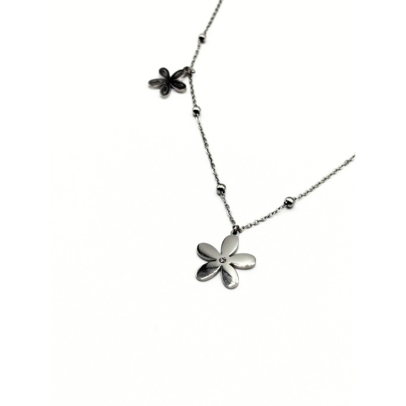 Collana in acciaio con elementi fiore e zirconi naturali. L'articolo verrà spedito in confezione originale IL GIOIELLO DI PANI.