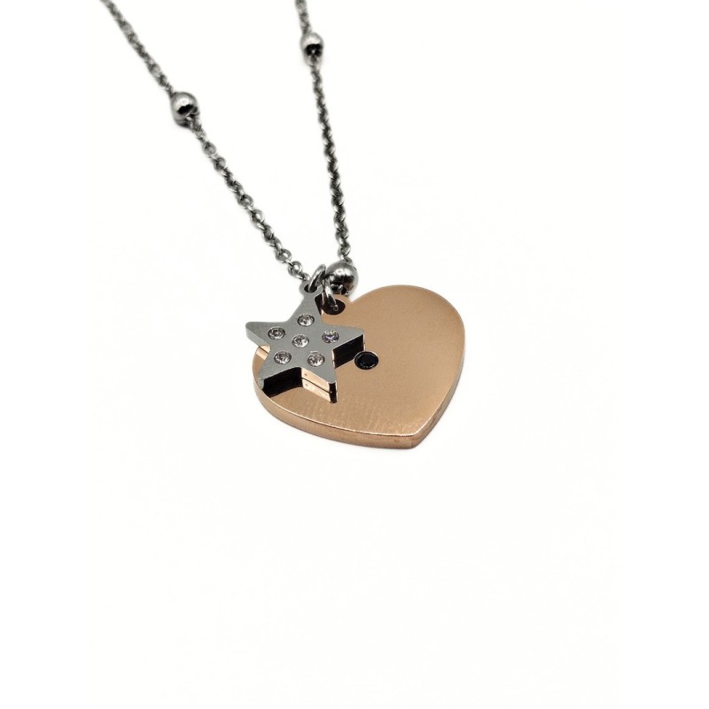 Collana in acciaio bicolor con elemento cuore e stella. L'articolo verrà spedito in confezione originale IL GIOIELLO DI PANI.