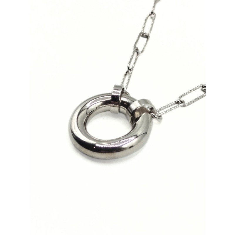 Collana in argento con maglia a catena e cerchio bombato lucido. Linea SHINY X LEI. L'articolo verrà spedito in confezione originale IL GIOIELLO DI PANI.
