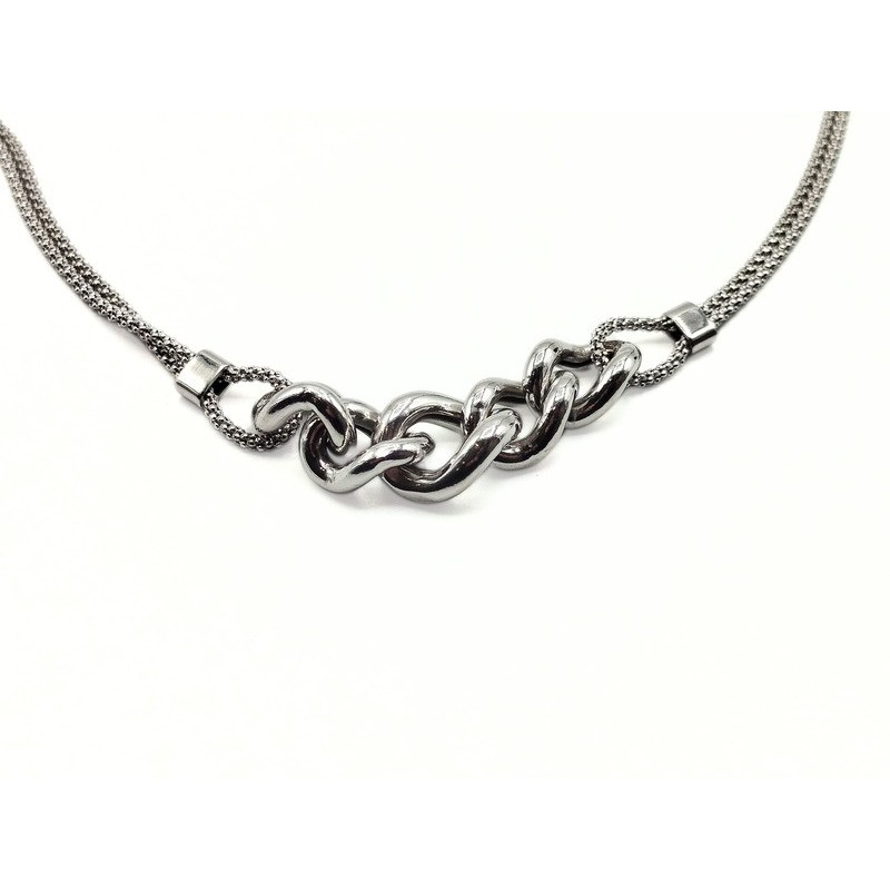 Collana in argento 925 2 fili maglia fope e intreccio centrale. Linea SHINY X LEI. L'articolo verrà spedito in confezione originale IL GIOIELLO DI PANI.