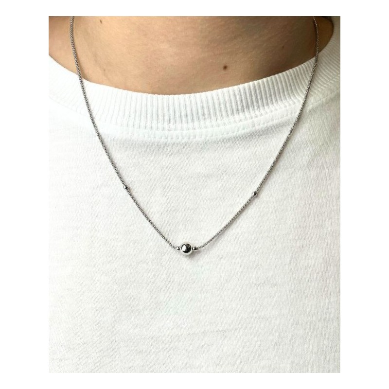 Collana pop corn e sfera in argento 925, con chiusura a moschettone. Questo articolo verrà spedito con scatola originale Il Gioiello di Pani.