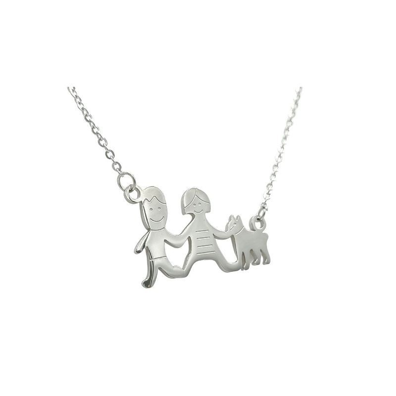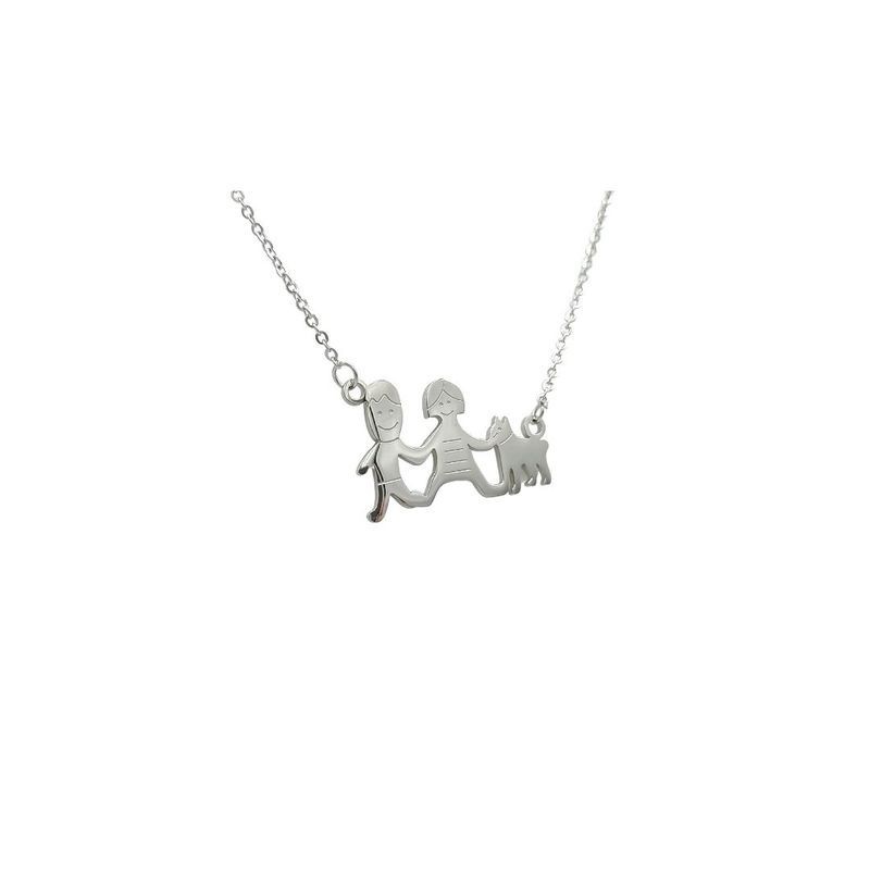 Collana Family con cane in acciaio 316L - Lunghezza catena rollon 45 cm