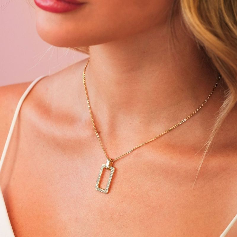 Girocollo in argento 925 dorato con pendente rettangolare in pavè di zirconi naturali. Collezione BOCCADAMO. L'articolo verrà spedito in confezione oriignale BOCCADAMO.