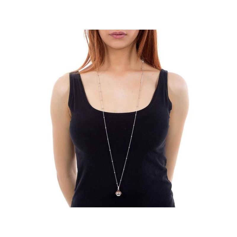 Collana con maglia di collegamento zirconata, pendente sonoro, diametro 14mm, e coppetta decorativa placcata oro rosa con stelle traforate.Duplice indosso: 1 filo - cm 100 / 2 fili - cm 50.I gioielli Boccadamo grazie al suo design raffinato ed elegante sono creazioni dall'indiscutibile fascino italiano. Collezione ANGELOMIO.Questo articolo verrà spedito con scatola originale Boccadamo.