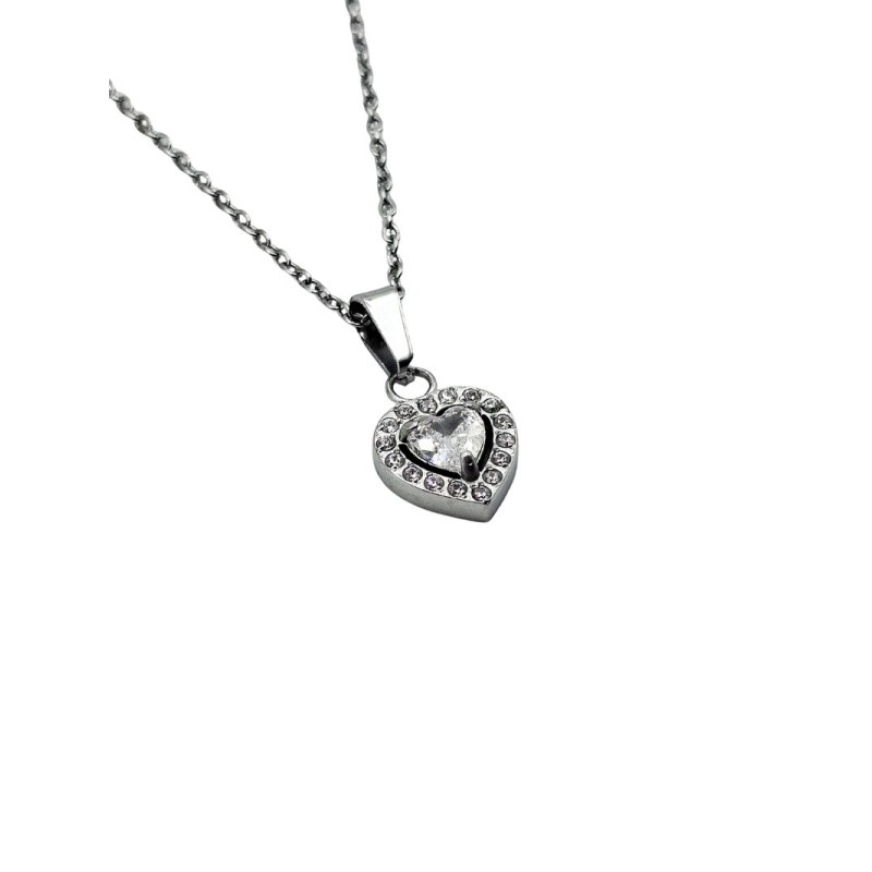 Collana da donna in acciaio con cuore e zirconi. L'articolo verrà spedito in confezione originale IL GIOIELLO DI PANI.