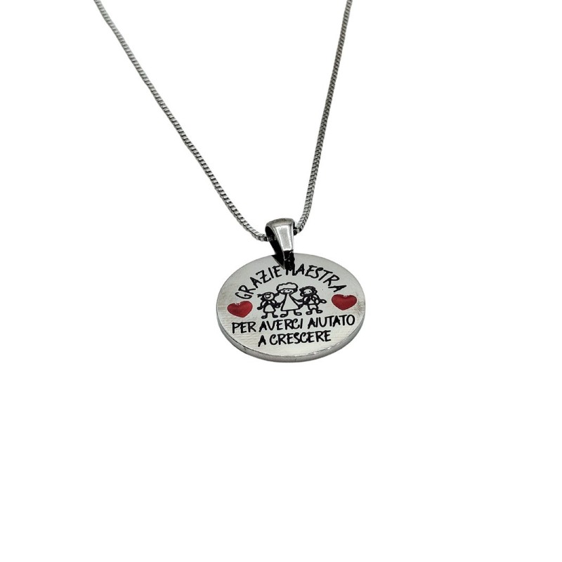 Collana in acciaio 316 l con frase GRAZIE MAESTRA PER AVERCI AIUTATO A CRESCERE . L'articolo verrà spedito in confezione originale IL GIOIELLO DI PANI.