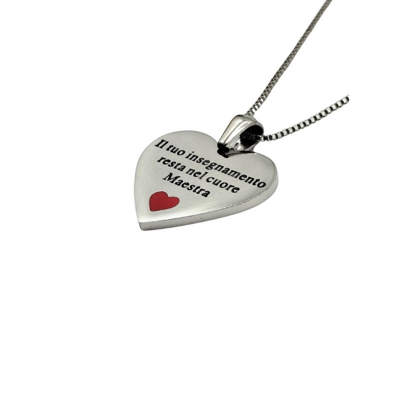 Collana in acciaio 316 l con frase IL TUO INSEGNAMENTO RESTA NEL CUORE MAESTRA . L'articolo verrà spedito in confezione originale IL GIOIELLO DI PANI.