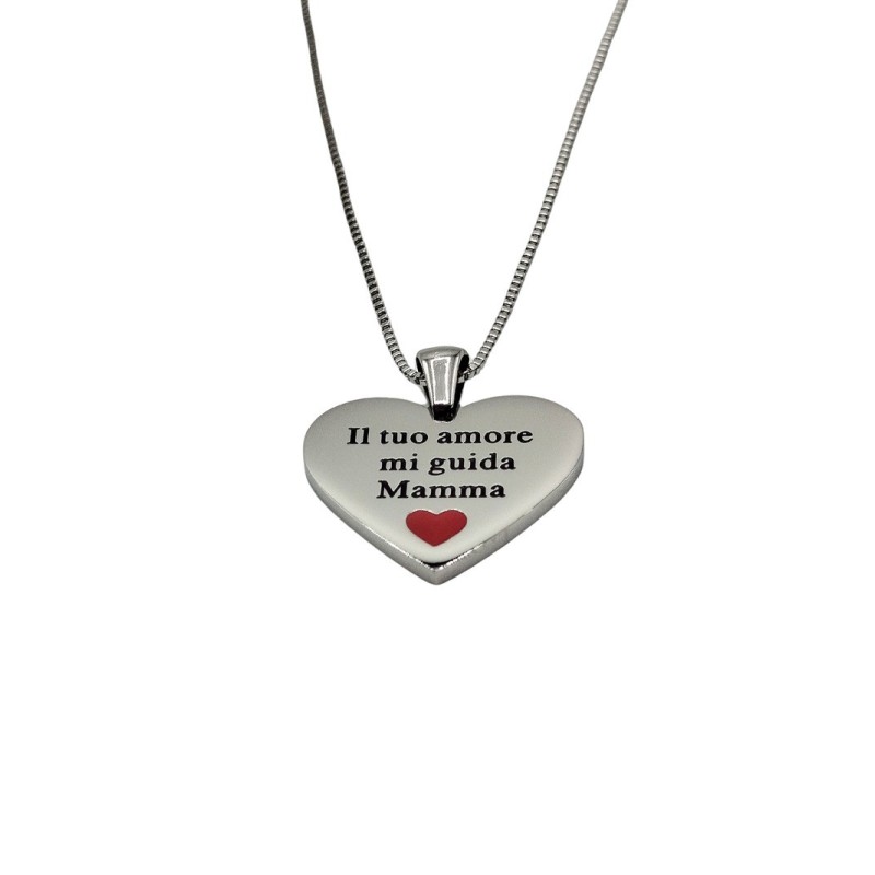 Collana in acciaio 316 l con frase IL TUO AMORE MI GUIDA MAMMA . L'articolo verrà spedito in confezione originale IL GIOIELLO DI PANI.
