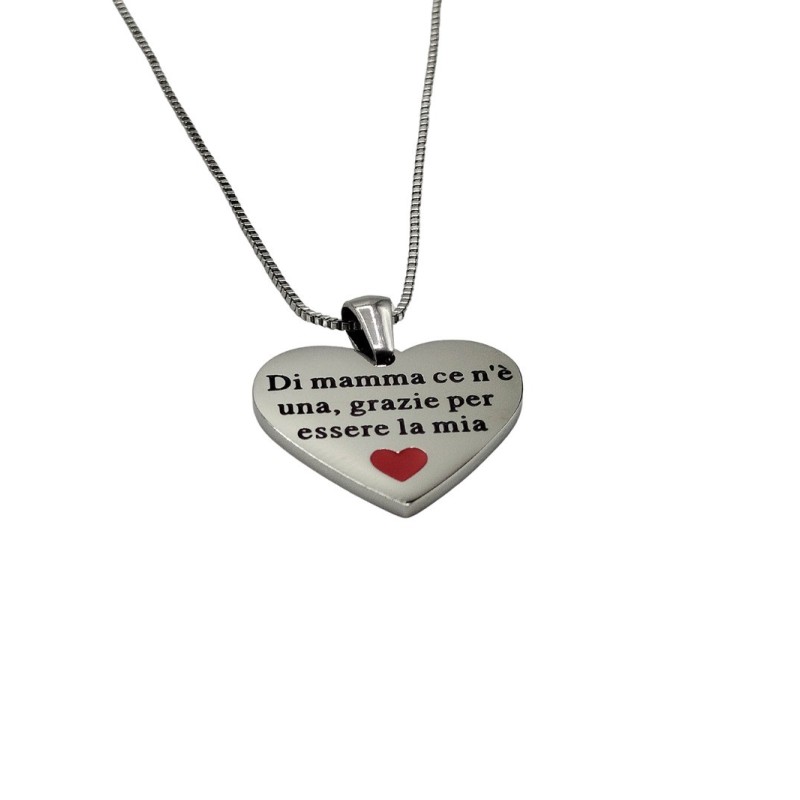 Collana in acciaio 316 l con frase DI MAMMA CE NE UNA, GRAZIE PER ESSERE LA MIA . L'articolo verrà spedito in confezione originale IL GIOIELLO DI PANI.